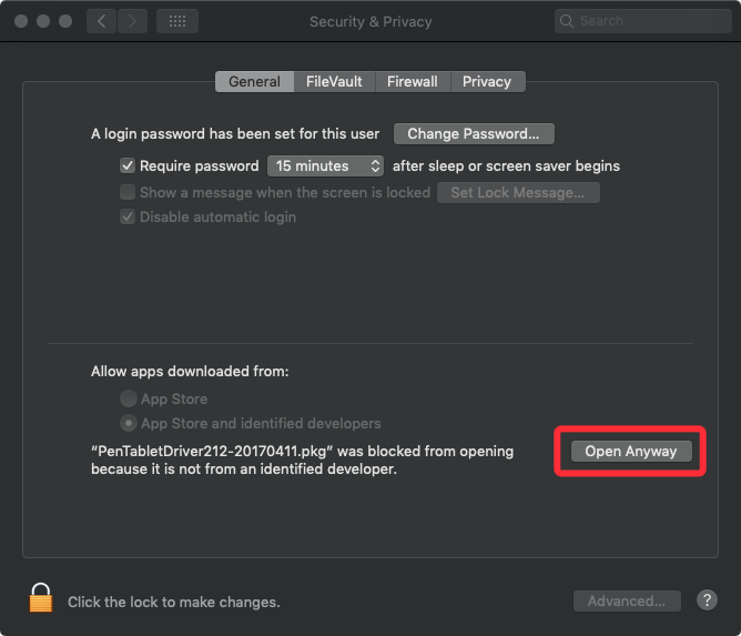 2. Click on the driver to install. An “Unidentified developer” error message will pop up, click the OK button.