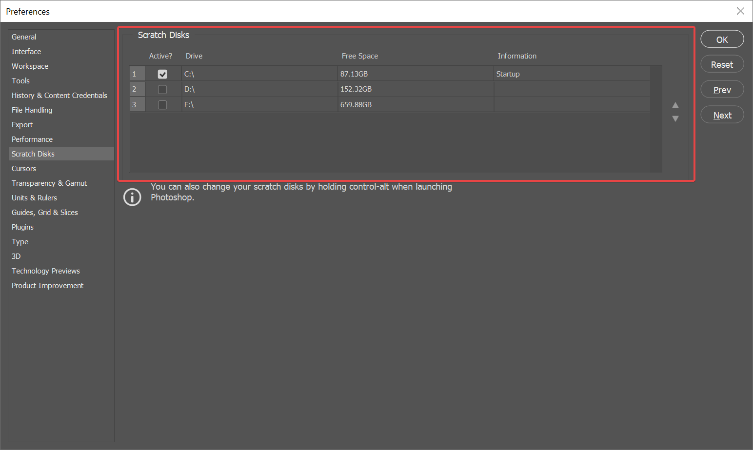 h) Make Sure That Your Scratch Disks Use Fast SSDs and Arent Full
