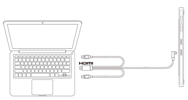 Collegare la tavoletta grafica con schermo al computer tramite il cavo da USB-C a USB-C.