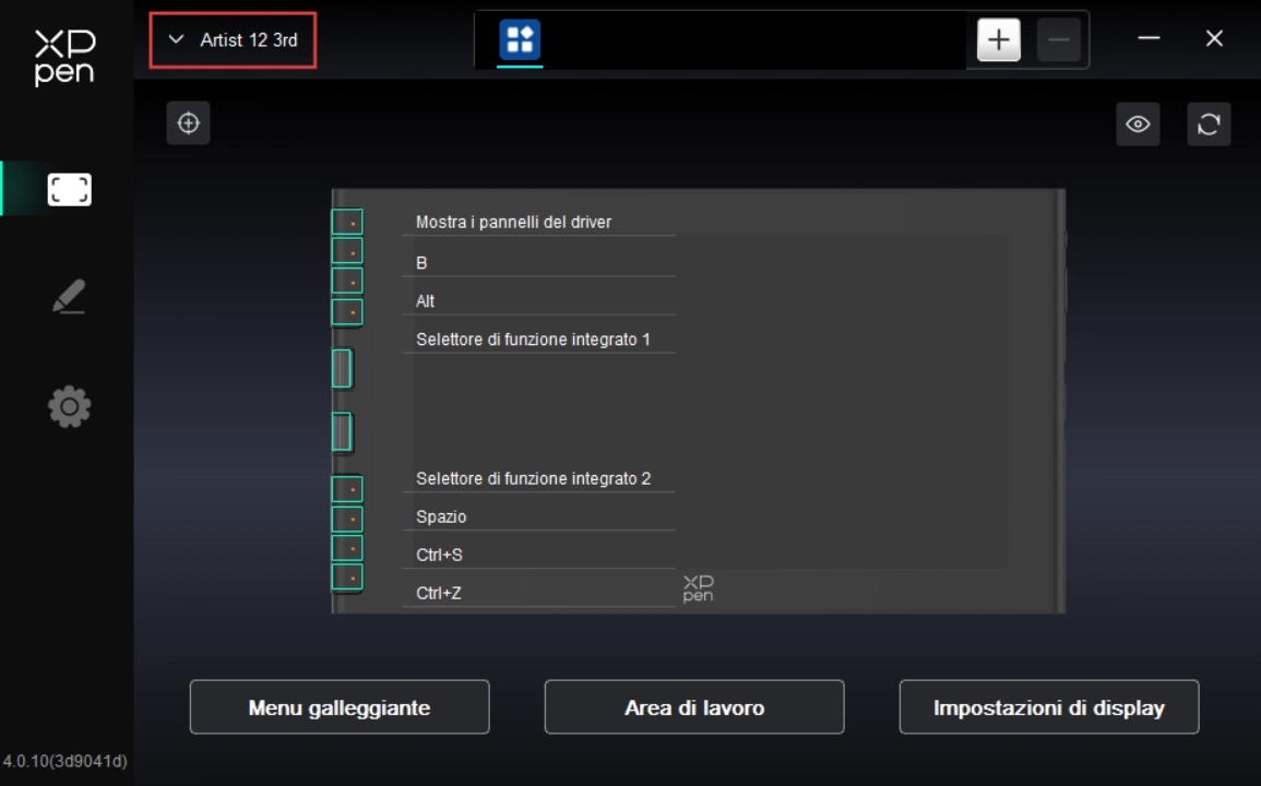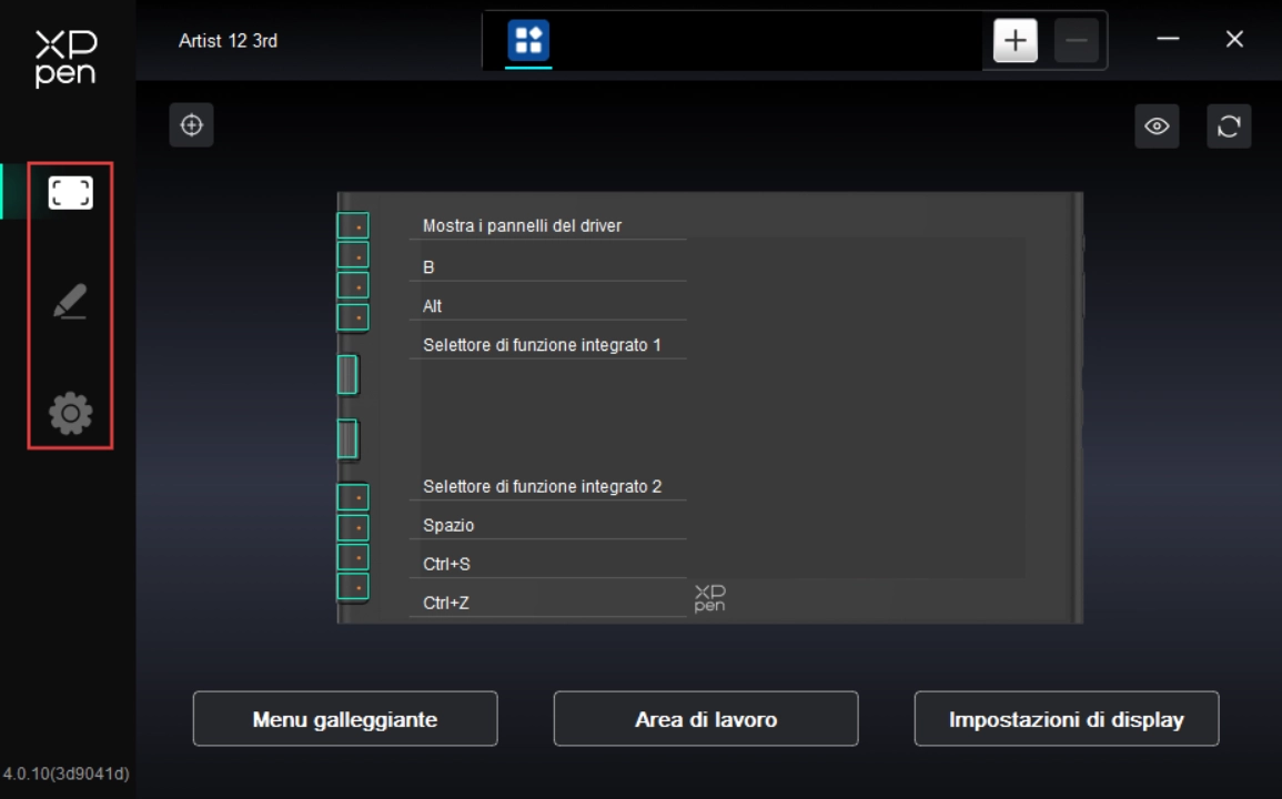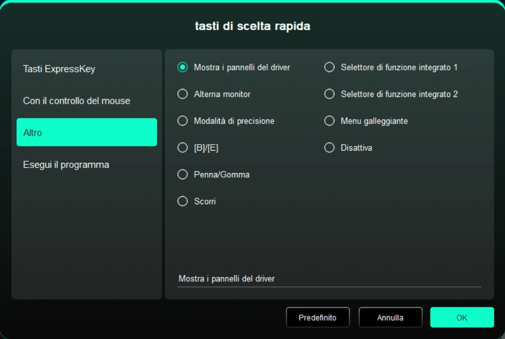 Facendo clic sull'icona sul lato sinistro del driver, è possibile commutare le funzioni del driver per aiutare a impostare le impostazioni relative al display grafico, tra cui: