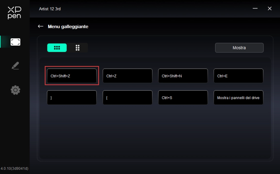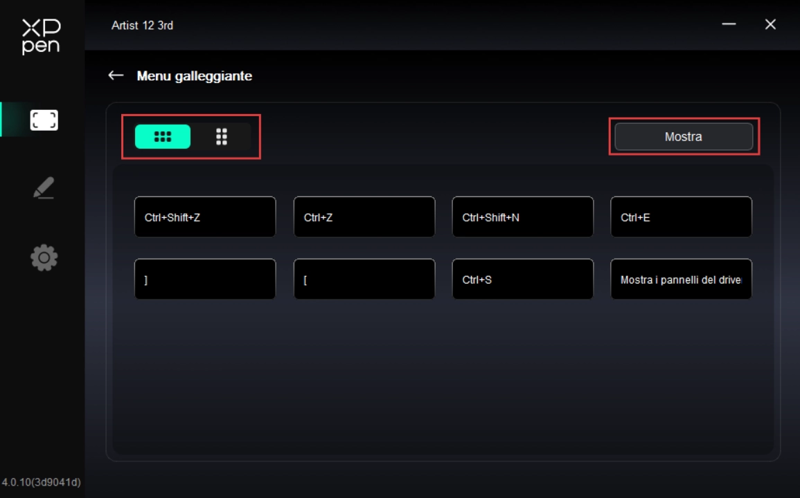 Il menu mobile consente di visualizzare i tasti di scelta rapida mobili sul display grafico o sul monitor del computer. È possibile impostare le operazioni più frequenti nel menu mobile, quindi utilizzare la penna o il mouse per fare clic sul pulsante ed eseguire l'operazione impostata. È possibile personalizzare la visualizzazione e le funzioni facendo clic sul pulsante "Menu mobile" nella pagina iniziale del driver e accedendo alla pagina del menu mobile.