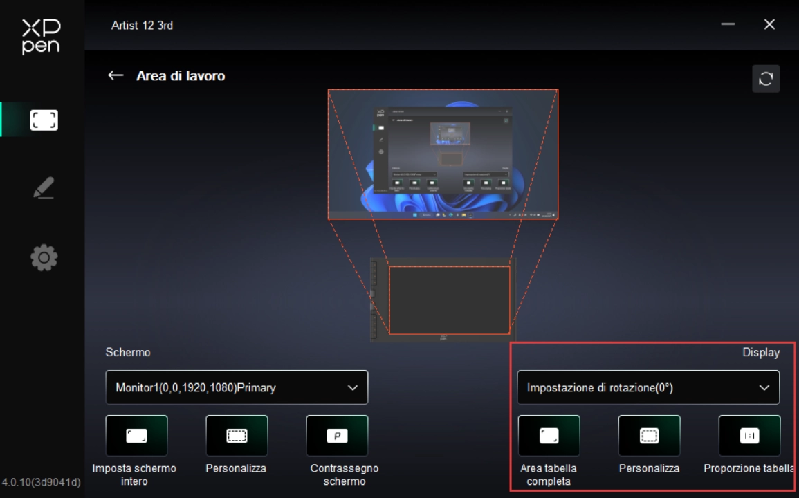 Se si utilizzano più monitor e questi sono impostati in modalità di estensione, selezionare il monitor su cui è mappata l'area di lavoro del dispositivo nella scheda di schermo.