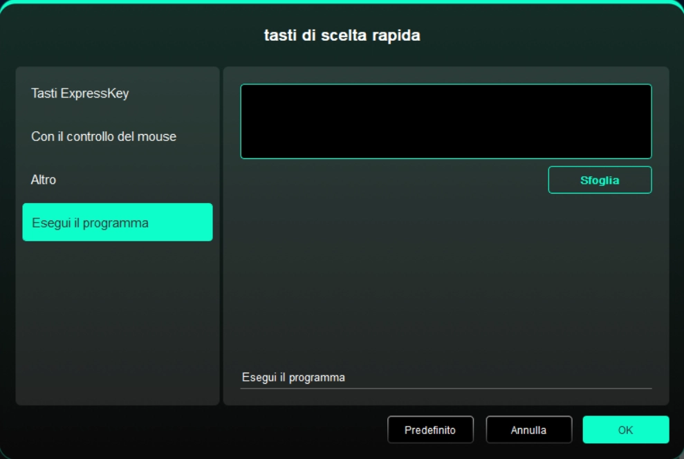 Ad esempio, se si seleziona un'applicazione e sene modifica la configurazione, le modifiche avranno effetto solo mentre si utilizza quell'applicazione. Il driver riconoscerà automaticamente quando si passa da un'applicazione all'altra. È possibile aggiungere fino a 7 applicazioni.