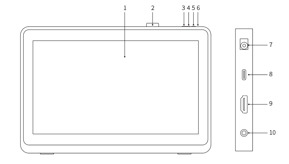 1. Collegate la tavoletta grafica con schermo all'alimentatore utilizzando il cavo di alimentazione e l'adattatore di alimentazione come mostrato di seguito.