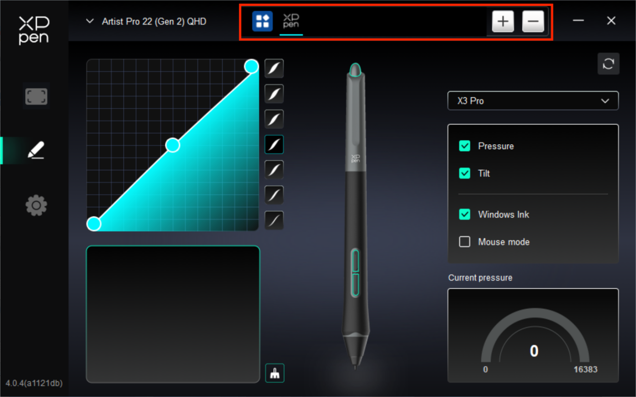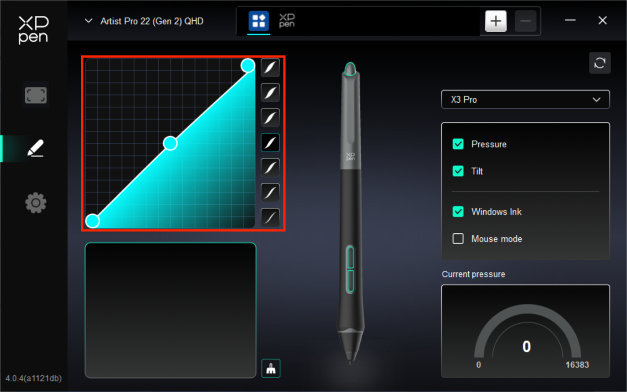 2) Scaricare i file di installazione del driver più recenti dal sito Web XPPen e controllare se la pressione della penna è normale nel driver.