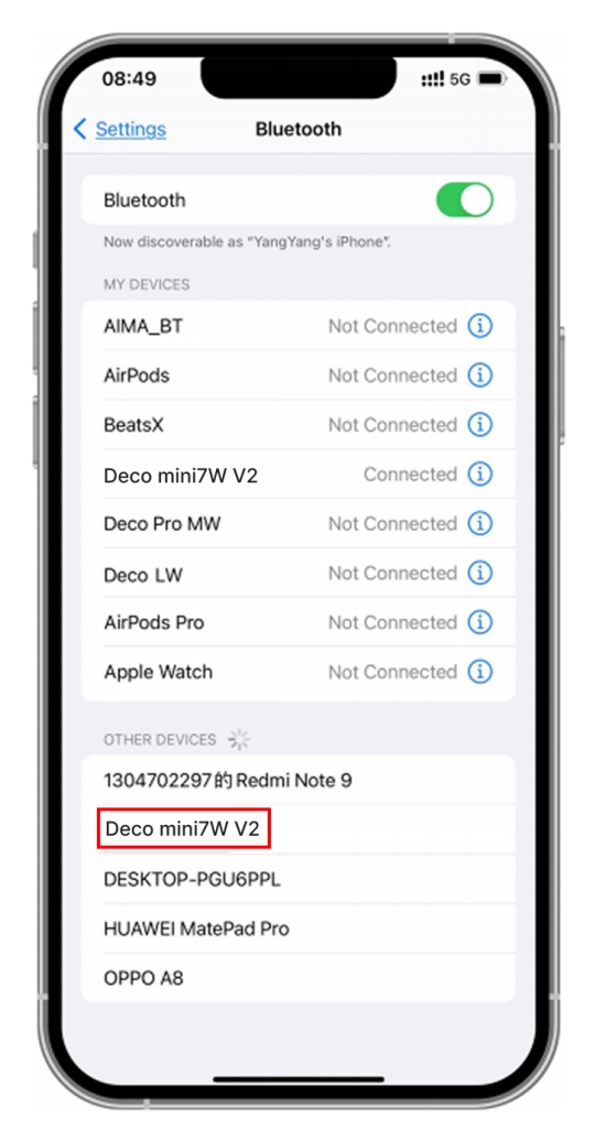 Quando la tavoletta grafica entra in modalità di associazione, attivare la funzione Bluetooth del telefono cellulare o del tablet, aggiungere dispositivi Bluetooth, cercare il nome del dispositivo "Deco mini7W V2" e quindi fare clic per associarlo.