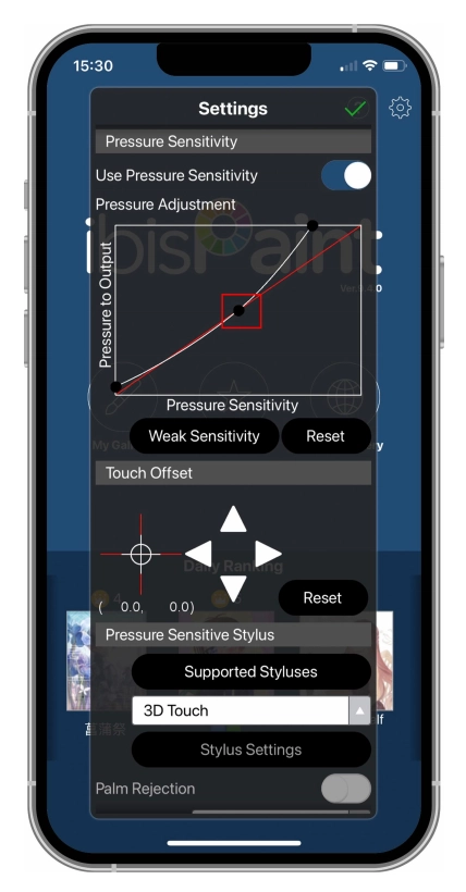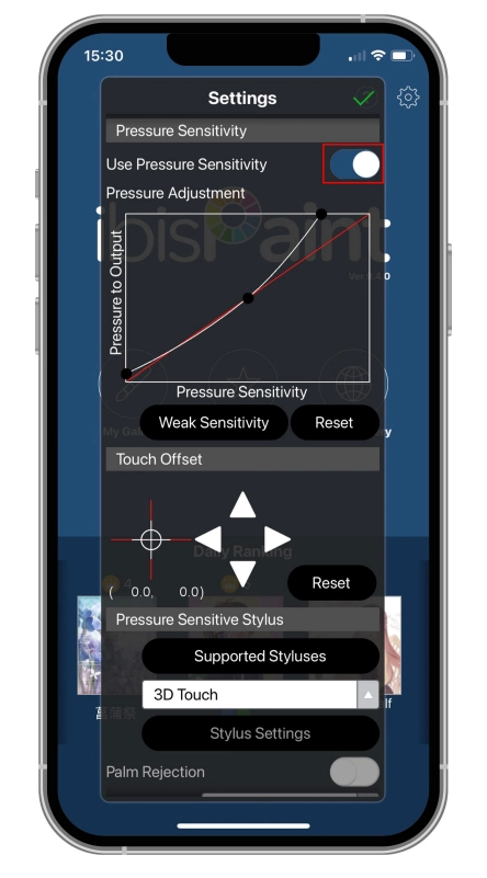 2. Trascinare il punto sulla linea della sensibilità della pressione per regolare la sensibilità della pressione della penna.