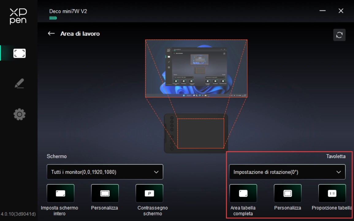 Se si utilizzano più monitor e questi sono impostati in modalità di estensione, selezionare il monitor su cui è mappata l'area di lavoro del dispositivo nella scheda di schermo.