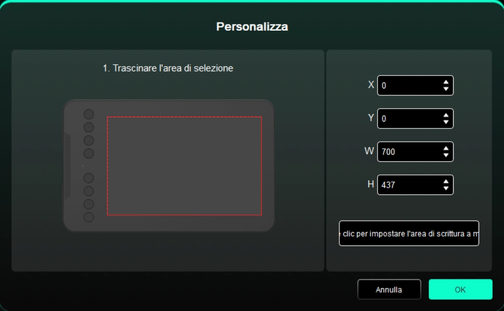 Modalità fine: limita l'area attiva dello schermo a un determinato intervallo, consentendo di disegnare l'area in modo più dettagliato
