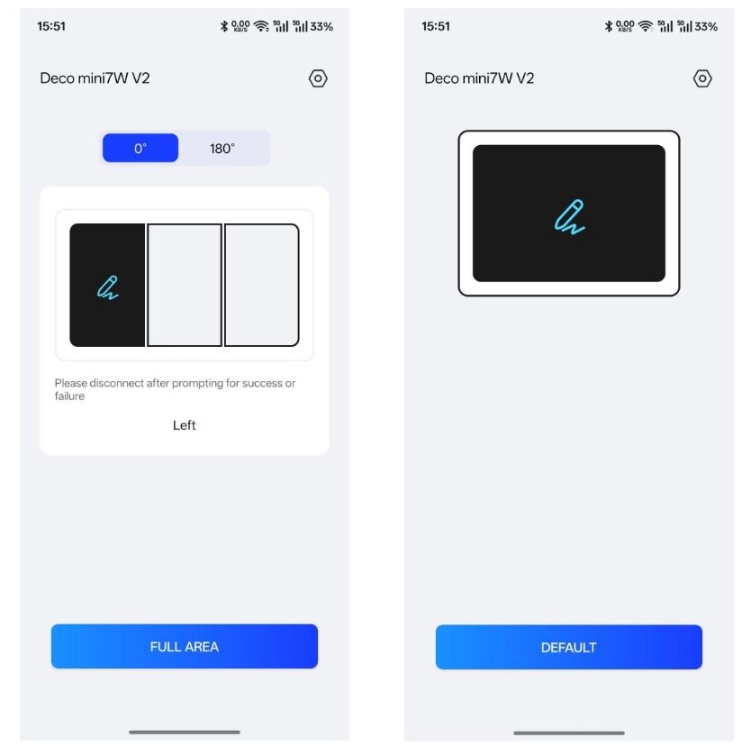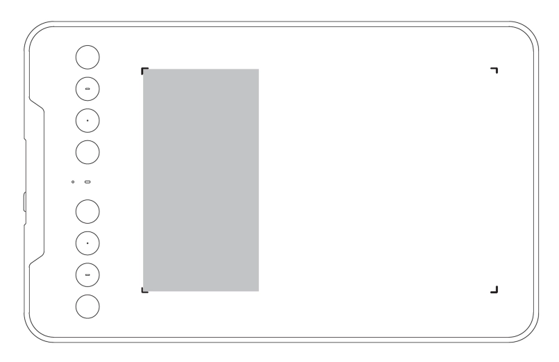 1) L'orientamento predefinito della tavoletta grafica è 0° e l'area di disegno è a sinistra. È possibile commutare tra posizione a sinistra, al centro e a destra.