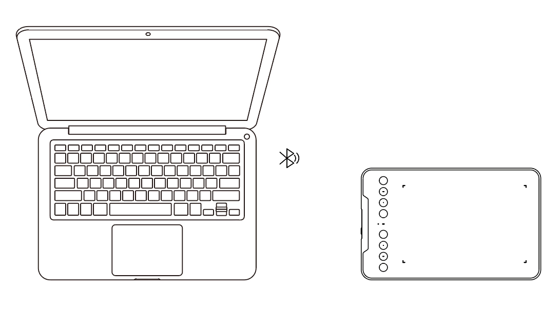 2. Abilitare il Bluetooth del dispositivo iOS e selezionare la tavoletta grafica per completare l'associazione (luce blu accesa dopo l'associazione riuscita).